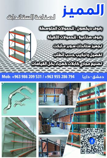 فادي دالاتيصناعة ستاندات - رفوف ديكسون للحمولات المتوسطة - رفوف صناعية للحمولات الثقيلة - تجهيز ستاندات سوبر ماركت - تفصيل وتركيب حسب الطلب - تصنيع مجاري كابلات كهرباء بكل القياسات